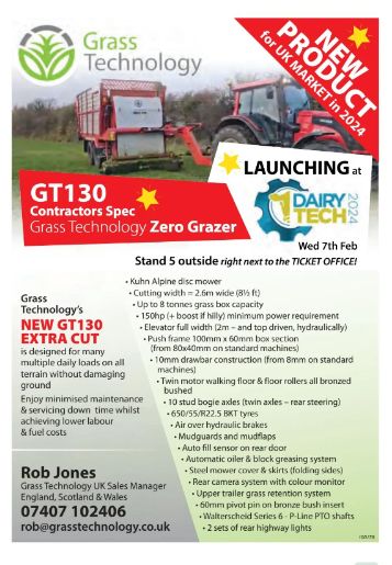 GT Super 6 er navnet på den nye frisk-græs-høster fra Irske Grass Technology. Den nye maskine har mange væsentlige nyheder ift. de til GT12o-160 serien. Super 6 har monteret en AlfiDisk skållægger fra Kuhn. Klippebreden er nu på 2,5 m mod 2,2 tidligere. Græsboksen har også en væsentlig øget kapacitet og nu med træk på øverste aksel. Ladet er 30 cm bedre og højere. Se Super 6 på NutriFair.